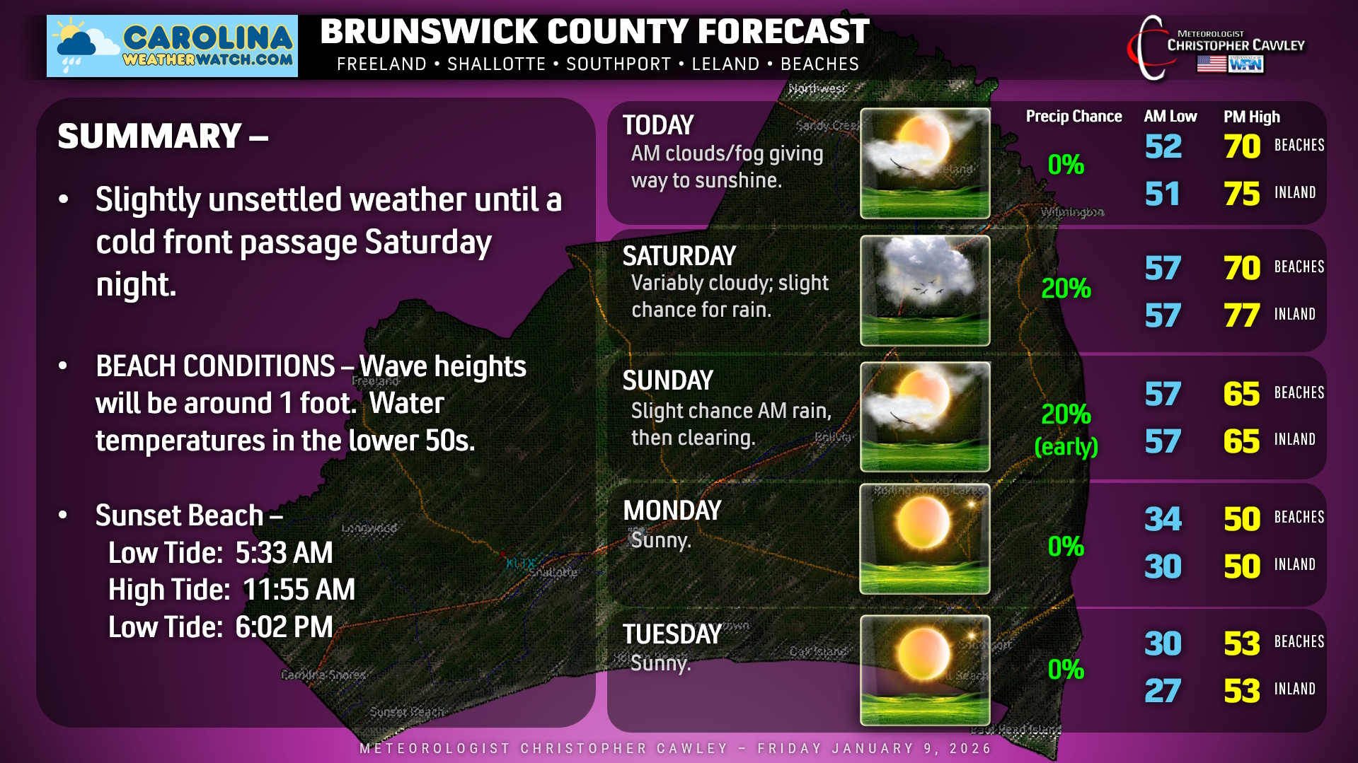 Greetings and welcome to the Brunswick County Weather Update for Friday January 9, 2026.
