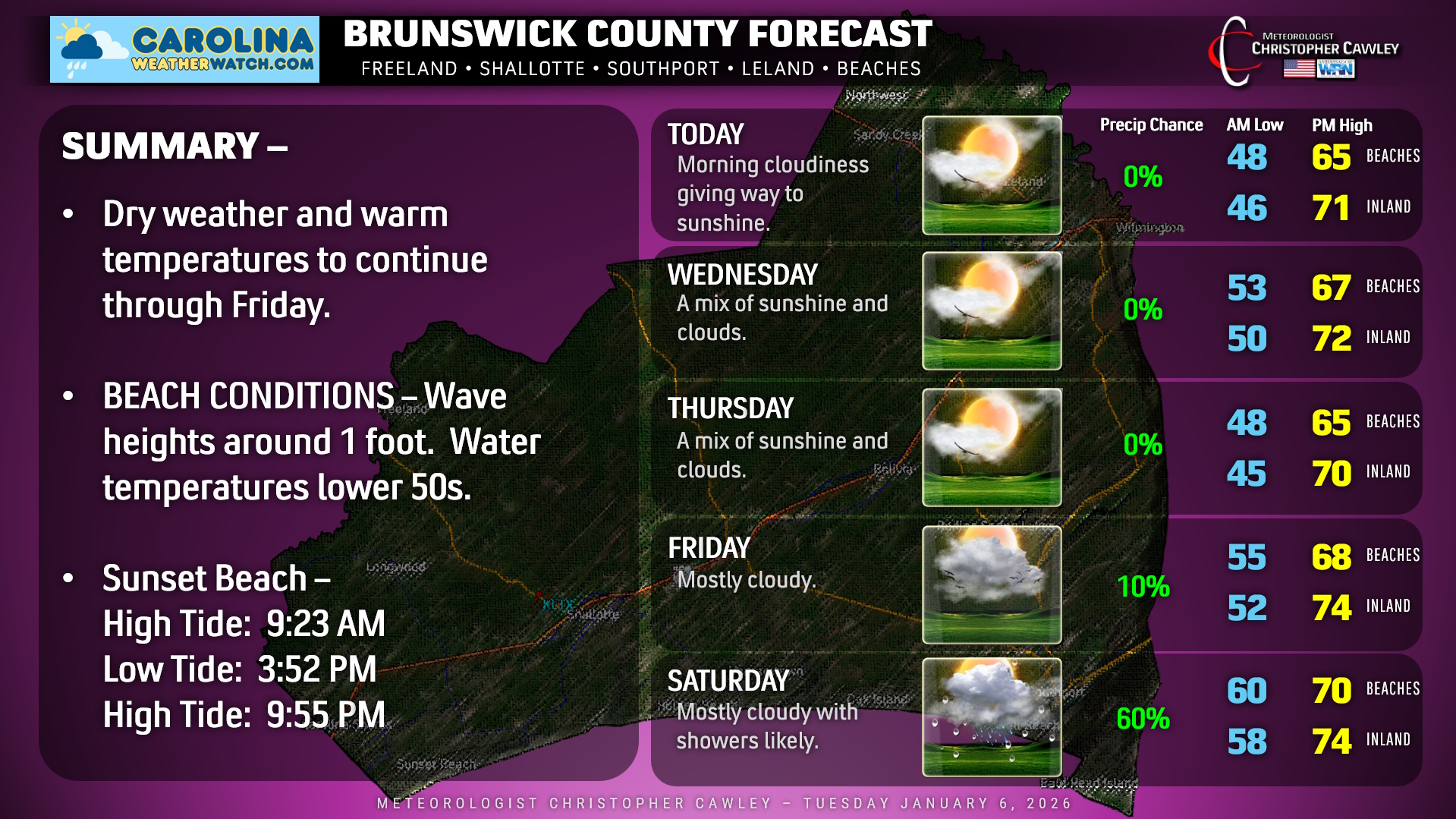 Greetings and welcome to the weather update for Brunswick County for Tuesday January 6, 2026.