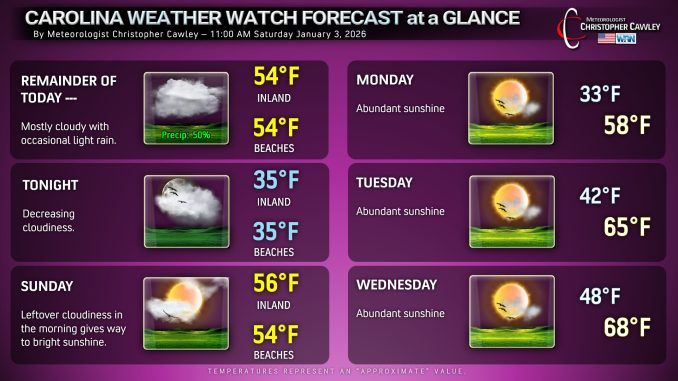 Carolina Weather Watch Update for Saturday Afternoon 1/3/2026
