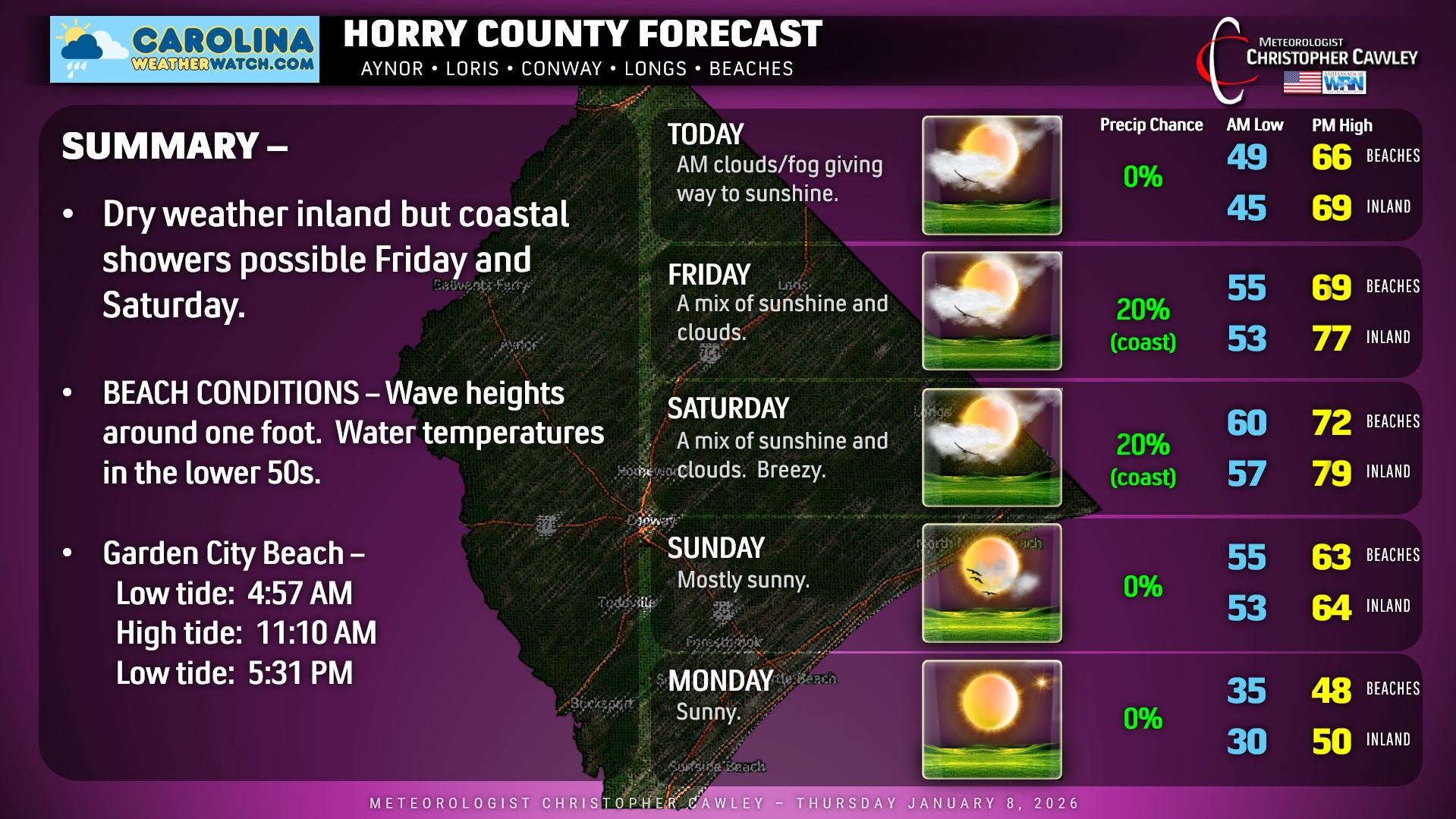 Horry County Weather Update for Thursday 1/8/2026