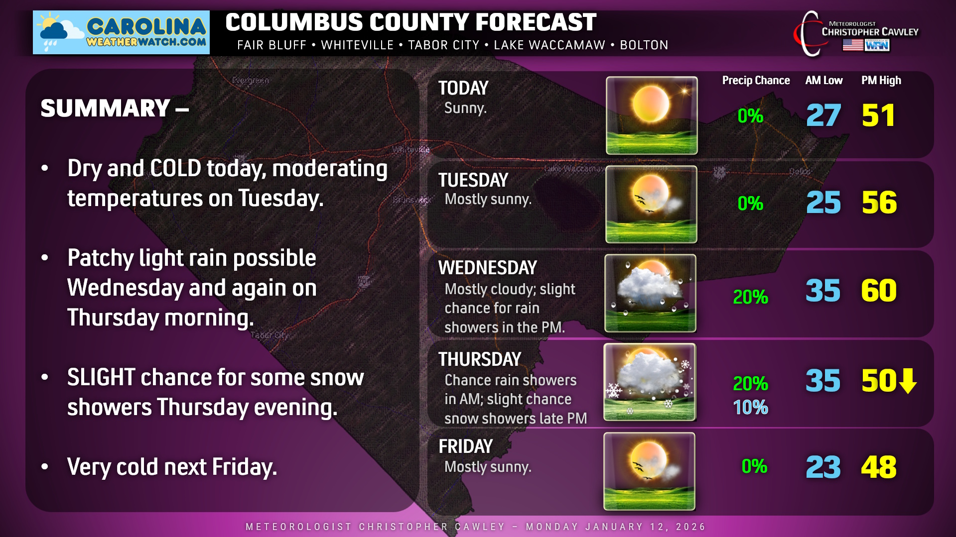 Welcome to the Columbus County Weather Update for Monday January 12, 2026!
